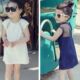 2017新款韩版 女童装拼接纱漏背短袖连衣裙 气质公主长款T恤裙子