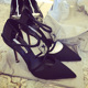 真皮2017春夏季新款真皮中空尖头高跟鞋细跟T带凉鞋性感水钻女鞋