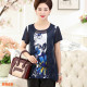 中老年夏装女装40-50岁2017年新款妈妈装套装宽松短袖真丝上衣t恤