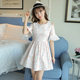 学院风少女修身甜美露肩短袖碎花连衣裙女夏季中学生显瘦休闲裙子