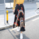 诗慕娅2017夏 半身裙高腰百褶裙格子女淑女雪纺印花大摆长裙裙子