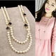韩版超长珍珠四叶草小香风长款毛衣链多层项链夸张配饰品女挂件冬