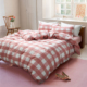 简约纯棉纯色格子四件套全棉田园小清新单人床单床笠1.5m床1.8床