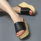 夏季新款欧美风坡跟凉鞋女厚底松糕鞋真皮高跟凉拖休闲沙滩女拖鞋