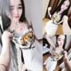2017夏季新款韩版夜店女装修身性感露肩挂脖印碎花无袖背心连衣裙