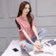2016夏装新款韩版百搭修身显瘦圆领短袖 条纹刺绣T恤 女