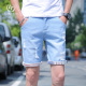 牛仔短裤男装夏季韩版潮宽松5分男士中裤薄款夏天五分破洞牛仔裤