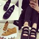2015春秋夏季一字扣镂空平底罗马松糕女式豆豆单鞋包头洞洞凉鞋子