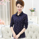 妈妈装秋装长袖T恤全棉翻领套头中年女装春装上衣中老年女打底衫