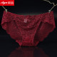 阿羽女士蕾丝面料透明诱惑性感内裤少女中腰无痕提臀大红色三角裤