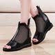 2017夏季新款网纱坡跟鱼嘴凉鞋性感平底女鞋内增高平跟罗马凉鞋潮