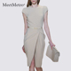 MeetMetro通勤气质2017夏季新款短袖修身开叉OL职业连衣裙女中裙