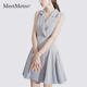 MeetMetro欧美女装2017夏季新款无袖职业气质连衣裙收腰显瘦a字裙