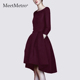 MeetMetro欧美2016秋装新款女装长袖不规则红色真丝连衣裙中长款