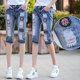夏季高腰五分牛仔短裤女松紧腰大码宽松哈伦裤显瘦破洞5分热裤薄