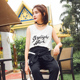 夏季韩范短袖t恤女宽松休闲韩版学生破洞bf百搭个性印花体恤上衣