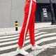 韩版百搭白边红色运动裤女春秋长裤薄款宽松显瘦直筒休闲裤卫裤潮