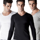 纯棉单件V领修身紧身长袖男士内衣秋衣保暖上衣中厚打底全棉毛衫
