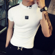 夏季简约刺绣t恤男短袖韩版修身白色圆领体恤衫精神小伙男士半袖