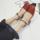 【天天特价】韩版方头拼色一字扣粗跟高跟单鞋OL气质优雅高跟鞋