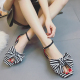 凉鞋2017新款女韩版气质甜美条纹大蝴蝶结交叉绑带露趾学生凉鞋