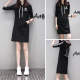 欧洲站2017新款潮印花口袋直筒中长款套头连衣裙七分袖连帽春装