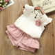 韩版女童套装夏装2017新款 儿童宝宝镂空飞袖短袖短裤棉质二件套