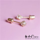 韩国正品纯14K金耳环 盘花闪石美钻圆豆豆纯金耳钉 拧螺丝耳骨钉