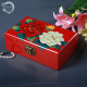 晋元恒 实木带盖干果糖果零食礼物盒 新年喜庆红色分格干果盒