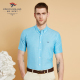 保罗夏季薄纯棉 男士 长袖 衬衫修身商务牛津纺休闲纯色蓝白 衬衣