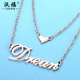 定制925银名字项链吊坠字母双层日韩时尚锁骨链学生日礼物送女友