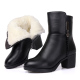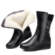 冬季女士靴子真皮中筒靴保暖羊毛棉靴妈妈棉鞋中老年加绒女靴坡跟