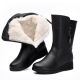 真皮羊毛女棉靴中筒靴子冬季加厚加绒保暖妈妈棉鞋坡跟中老年棉靴