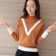 鸡心领毛衣女 v领套头韩版低领宽松学院打底衫显瘦短款百搭针织衫