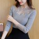 春秋低领上衣针织衫女套头性感薄款长袖毛衣蕾丝线衣短款修身打底