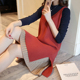 低领毛衣女套头中长款宽松韩版秋冬季复古加厚粗线下摆开叉针织衫
