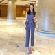 夏季无袖收腰荷叶边上衣修身九分裤职业气质名媛条纹两件套套装女