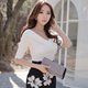 2017夏季女装韩版时尚性感V领白色上衣女 时尚修身中袖T恤女
