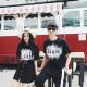 阿姐家 情侣装夏装2017新款韩版修身圆领字母印花短袖t恤女学生潮