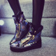 冬鞋冬季新款涂鸦双拉链毛毛棉靴女雪地靴子韩版加厚保暖马丁靴