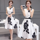 水墨印花连衣裙2017夏装时尚新款中长款圆领欧洲站a字无袖背心裙