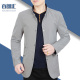 春秋中年男外套春装休闲立领薄毛呢夹克中老年人大码爸爸男装上衣