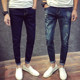 春秋季弹力男士破洞牛仔裤青年韩版乞丐裤男日系修身小脚长裤子潮