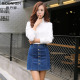 牛仔短裙a字裙女半身裙春夏弹力高腰单排扣牛仔裙半身裙a字裙显瘦