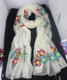 秋冬季新款韩版百搭绣花围巾女刺绣花朵雪纺长款丝巾保暖白色文艺