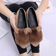 2017春秋新款兔毛单鞋韩版坡跟厚底鞋加绒飘鞋圆头水钻豆豆女鞋子