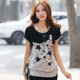 大号女装夏装短袖t恤特大码韩版宽松印花上衣200斤加肥胖MM打底衫