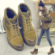 2016秋冬新款真皮靴子韩版女靴系带高跟厚底马丁靴女粗跟短靴加绒