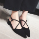 16气质绒面粗跟中跟包头凉鞋女夏季新款2017性感交叉细带尖头女鞋