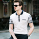 尊舰夏季中年男士短袖t恤翻领商务休闲POLO衫格子大码体恤薄衣服